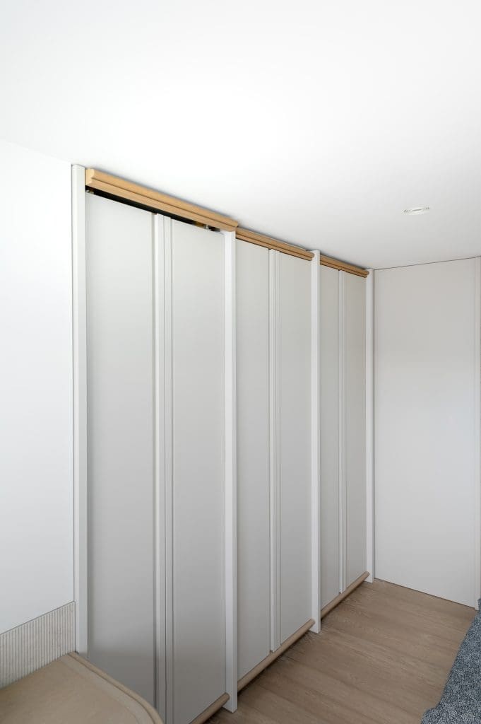 The final concept centred on a custom joinery system housing Mitsubishi fan coil units within cabinetry plinths.